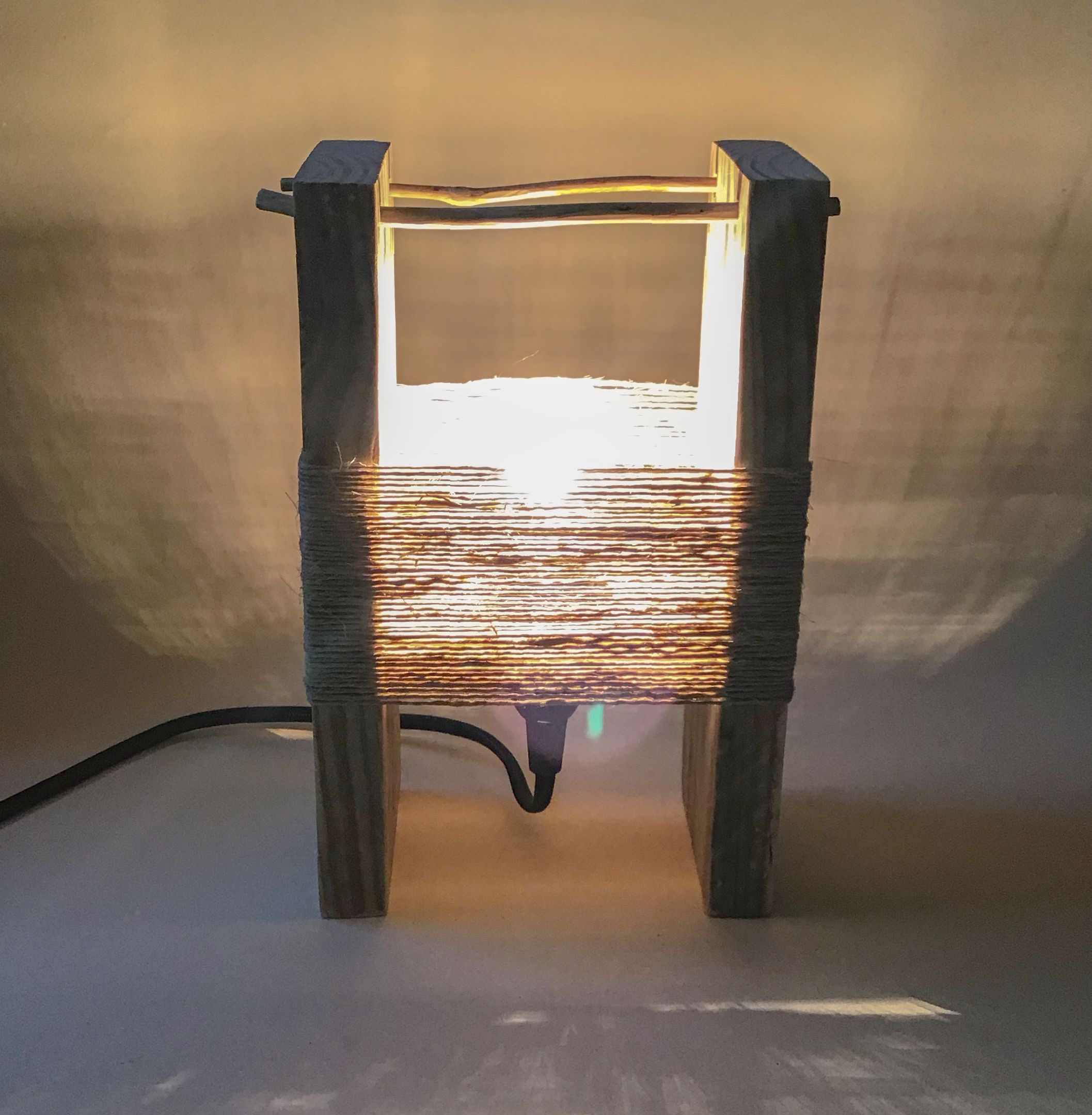 Cette lampe en bois flotté est une création originale pour tous les amoureux de la mer et de la nature. Faite de deux planches en bois flotté parfaitement découpées et poncées, et de deux petits bois flottés qui les relient, cette lampe originale saura prendre facilement sa place dans votre intérieur, toujours dans un esprit écologique. Le cordon électrique noir est en tissu et de la ficelle de lin entoure les deux planches pour une lumière plus tamisée. Ces bois flottés sont des éléments naturels qui ont été ramassés directement sur les plages de la Côte d’Émeraude, en Bretagne. Ils ont été lavés, brossés, séchés puis poncés pour leur donner un aspect lisse. Un petit air marin pour une décoration « bord de mer » ou « design »