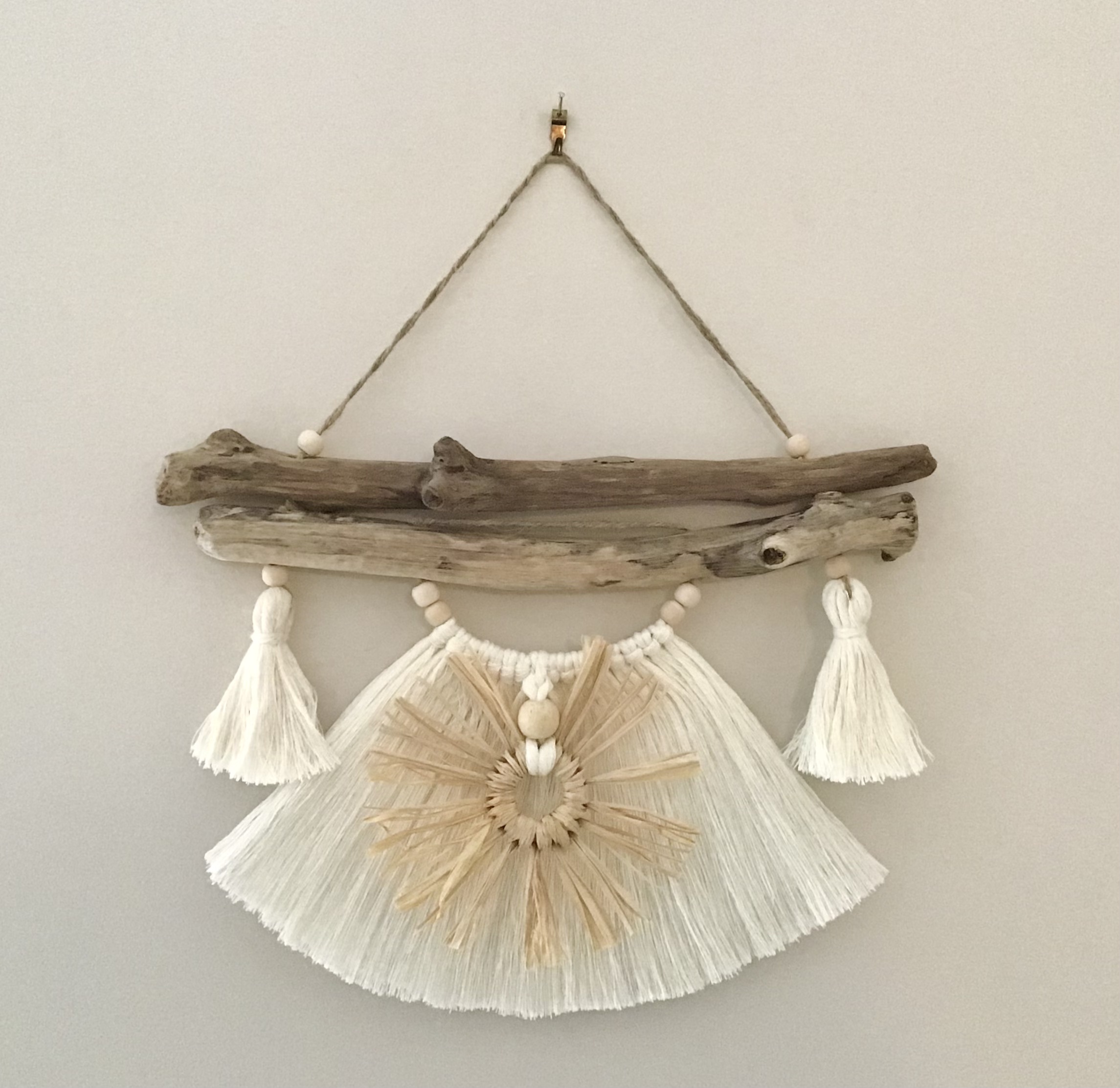 Bois flotté, Macramé, Pompon, raphia