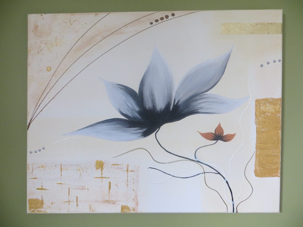 Tableau de style Abstrait dans les couleurs beige et or, avec des touches de gris, peint à l’acrylique.