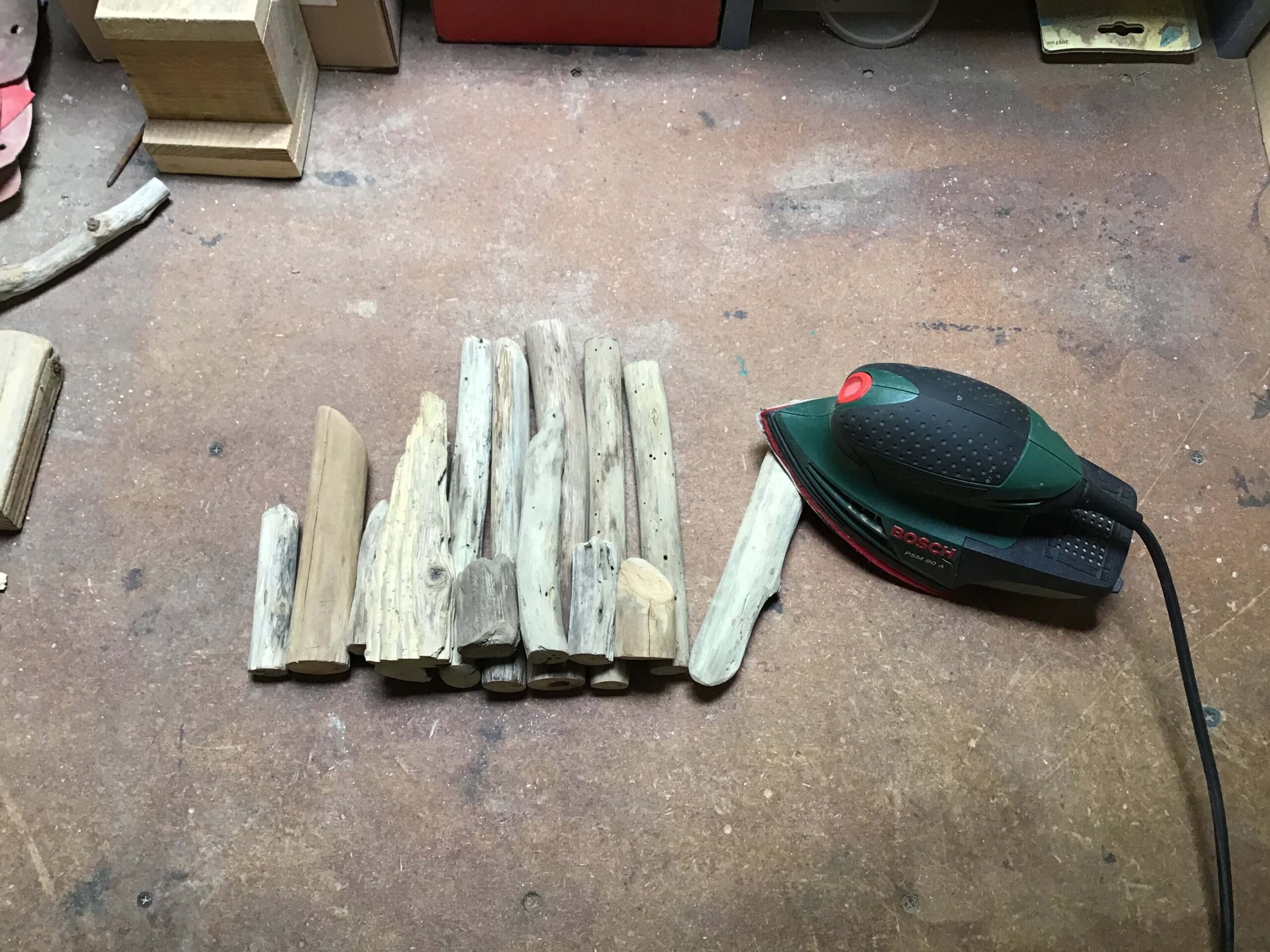 - Sélectionnez les 17 bois flottés qui constitueront votre lampe.