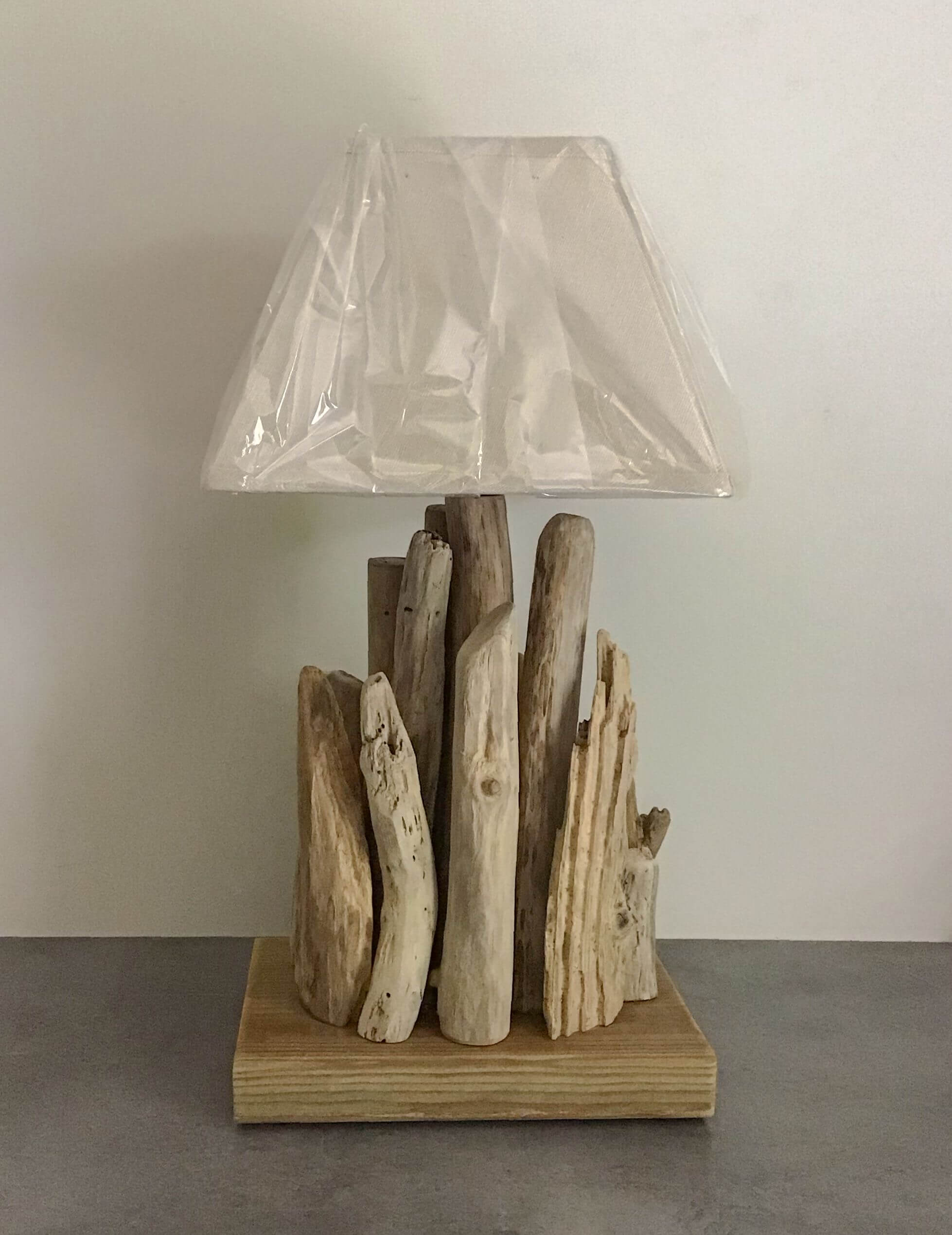 Pour fabriquer une lampe en bois flotté de 41 cm de hauteur, il vous faut :